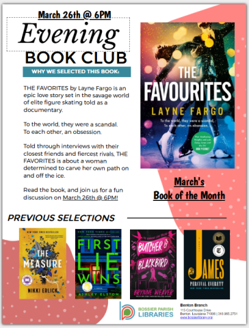 Benton Branch has another book club! If you're interested in joining a group that shares your enthusiasm for a good book and interesting conversation, look no further. Each month, the group selects an intriguing read to enjoy and discuss.